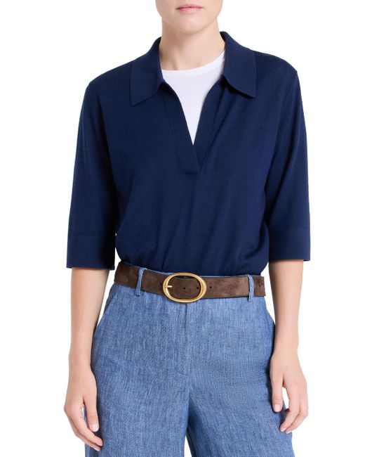 The Polo relaxed fit sweater from TWP is crafted of a merino wool-silk blend and designed with a Johnny collar and three-quarter-length sleeves. Johnny collar Three-quarter-length sleeves Pulls over 70% merino wool/30% silk Dry clean Made in USA SIZE & FIT About 22" from shoulder to hem Model measurements: 5'10" tall Model is wearing a US size Small ABOUT THE BRAND New York-based label TWP offers modern, effortless takes on go-to wardrobe staples. On a mission to democratize luxury, founder Trish Westcoat Pound, of Haute Hippie fame, focuses on high-quality details and subtle yet alluring silhouettes to create elevated, everyday pieces-all made in the U.S. with fabrics sourced from Italy. Contemporary Sportswear - Contemporary Lifestyle > Twp > Saks Fifth Avenue. TWP. Color: Navy. Size: XS.