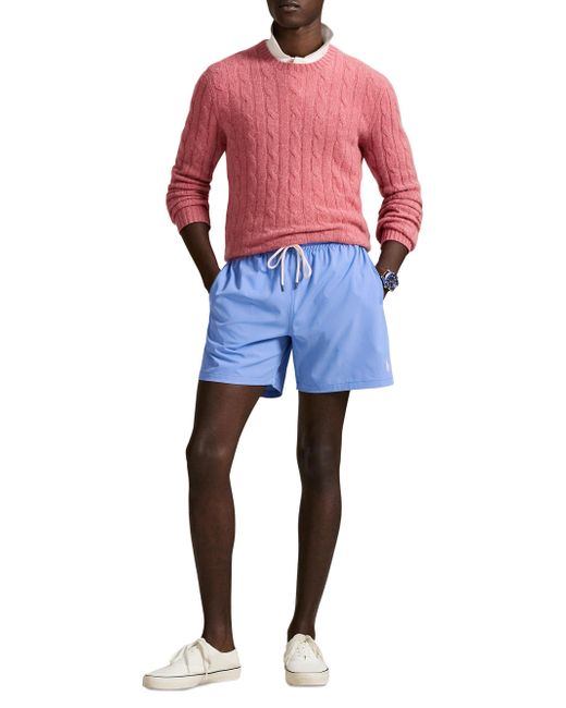 Polo Ralph Lauren's Traveler swim trunks feature a mid-length design for versatile wear. Drawstring waistband Side on-seam pockets Back button-through flap pocket 90% polyester/10% elastane Lining: 100% polyester Machine washable Imported SIZE & FIT Model measurements: 6'2" tall, 40" chest, 31" waist Model is wearing a US size Medium ABOUT THE BRAND Synonymous with Americana style since 1967, Ralph Lauren started with one item-the necktie-under the name Polo. The house has since stood for the epitome of refined dressing for men. From collegiate sweaters and polos to evening-ready suiting and tailored coats, there's a timeless piece for every occasion. Men Luxury Coll - Polo Blue Label > Polo Ralph Lauren > Saks Fifth Avenue. Polo Ralph Lauren. Color: Harbor Island Blue White. Size: XS.