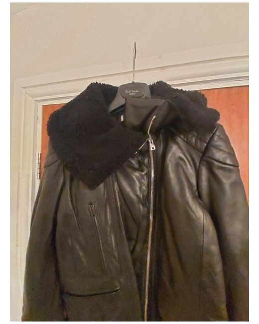 bought at Paul Smith London sample sale but too small for my wife. off centre zip, shearling lining , cuffs ,collar. Paul Smith signature logo embossed zip pullers, ptp approx 17 inches, but will fit smaller as thick sheepskin leather. beautiful quality and detail. TWO SMALL DENTS ON BACK PANEL, NOT RIPPED- UNNOTICEABLE WHEN WORN, AND WILL PROBABLY BUSH OUT FINE MANY THANKS