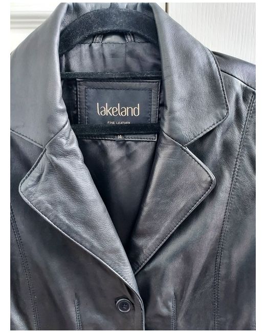 The Lakeland Women's Fine Leather Black Jacket in size 14 is a stylish and versatile addition to any woman's wardrobe. Made from high-quality leather with a button closure, this blazer-style jacket is perfect for both casual and business occasions. The long sleeves and collared neckline provide a classic look, while the lined interior and pockets add practicality. Designed in the United Kingdom, this basic jacket is suitable for autumn, winter, and spring, making it a timeless piece for the modern woman.