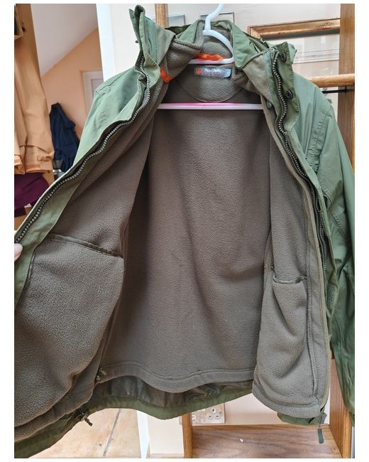Brand new, never warn women's Peter Storm Performance jacket. Has an inner fleece lining which is removable. Vented with zips under armpits. Zipped pockets. Size S = Size 10. 45cm from underarm to hem. 73cm from shoulder at neck to hem. Fully zipped for both the inner and outer shell. VERY warm. Outer shell is waterproof. Also have Peter Storm women's rucksack to match if of interest.