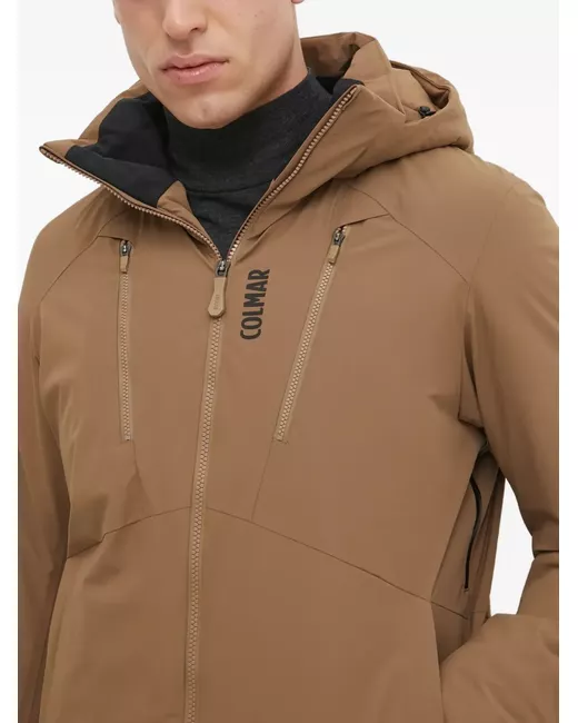 brown zip fastening hooded side pockets long sleeves logo detail