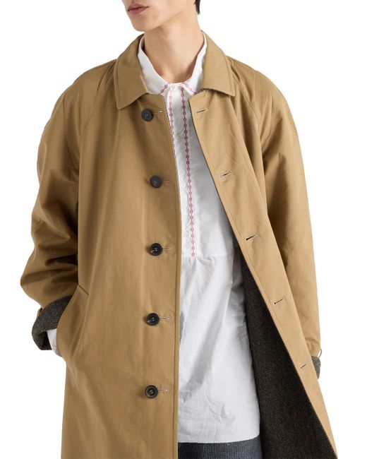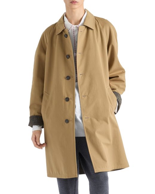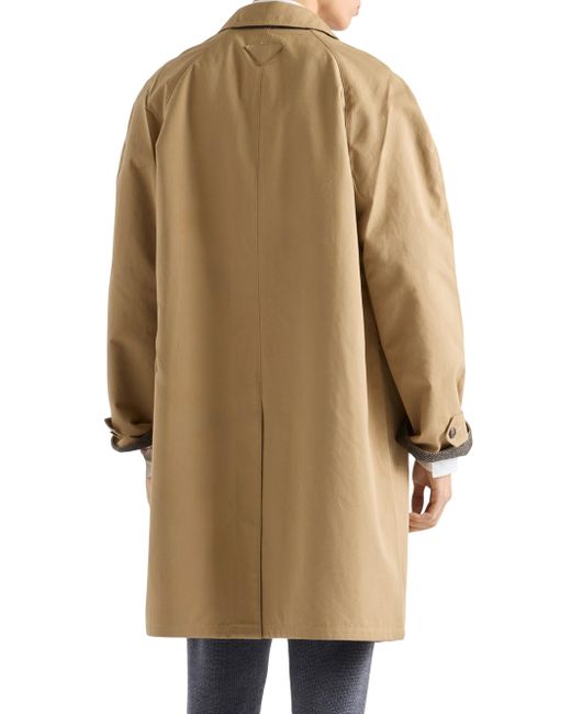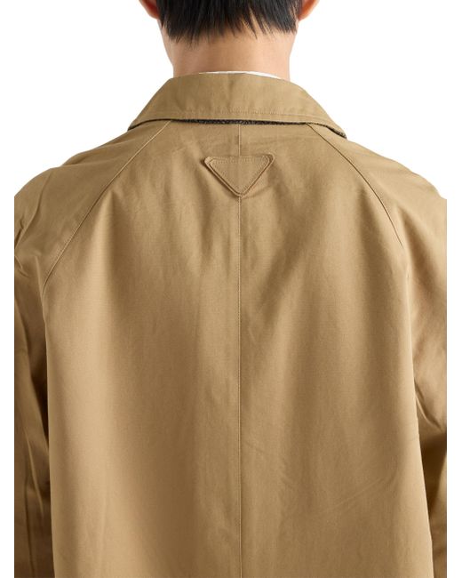 Loose fit Shirt-style collar Straight sleeves Five-button closure Wide welt pockets Cuffs with strap and button Wide shoulder Back vent Lined garment Fabric triangle logo The folds and creases are created by pressing the finished garment Imported 100% Cotton. Lsd Rtw - Prada Rtw > Prada > Saks Fifth Avenue. Prada. Color: Brown. Size: 36.