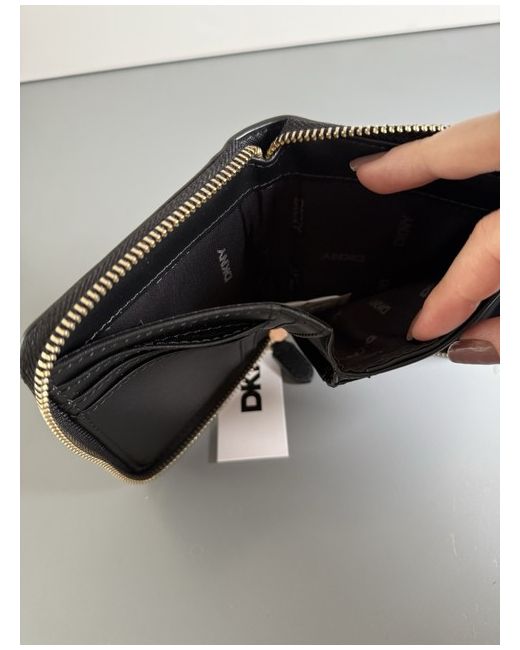 The DKNY Black Pocket Wallet is a stylish and practical accessory for women. Made from leather, this zip-around wallet features multiple credit card slots for easy access and organization. The sleek black colour adds a touch of sophistication, making it a versatile piece to complement any outfit. This one-size wallet is perfect for keeping your essentials secure and within reach at all times.