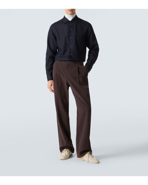 Materiale: 100% lino. Trattamento: lavaggio in lavatrice a 30°. Made in Italy. Colore del designer: Blue Navy. Colore dell'articolo: blu. Collo: classico (a punta). Tasche: tasca sul petto arrotondata. Chiusura: abbottonatura frontale. Polsini: abbottonato. Lino.