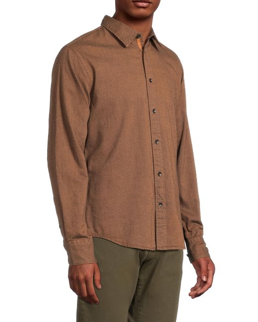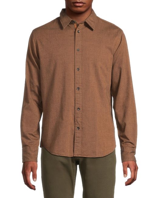 This classic-fit Tomlin dobby shirt from rag & bone is crafted of a subtle two-tone, textured stretch-cotton. Point collar Long sleeves, button cuffs Shirttail hem Button-front closure 98%cotton/2%spandex Machine wash Imported SIZE & FIT About 34.25" from shoulder to hem Model measurements: 6'2" tall, 40" chest, 31" waist Model is wearing a US size Medium ABOUT THE BRAND In 2002, rag & bone founder Marcus Wainwright combined his British heritage with a downtown-New York aesthetic to set the tone for the label. At the heart of the edgy-yet-laid-back brand is its focus on quality craftsmanship and attention to detail. The epitome of cool, off-duty style, it's no wonder the signature denim and easy knits are favored by many. Mens Denim & Contemp - Contemp Denim And Bottom > Rag & Bone > Saks Fifth Avenue. rag & bone. Color: Rust. Size: Small.