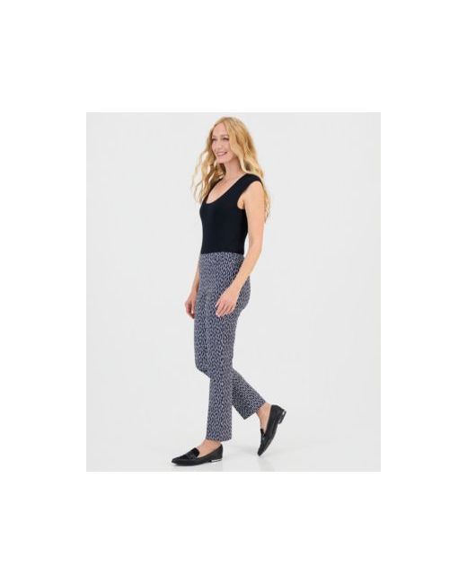 A chevron print commands attention, creating an illusion of endless motion in these straight leg pants by Jm Collection. The rivet-detailed waist provides a structure that defines your silhouette, designed to be pulled on for versatile ease of wear.