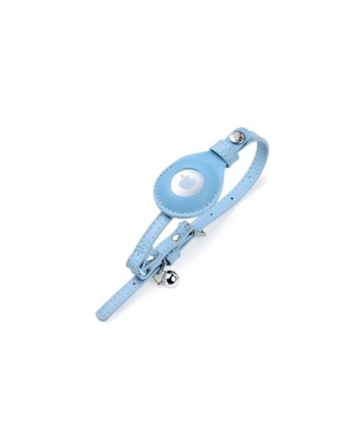 Silver-Powered Freshness Microfiber Leather AirTag Cat Collar with Bell Sweet Pink di colore Blu