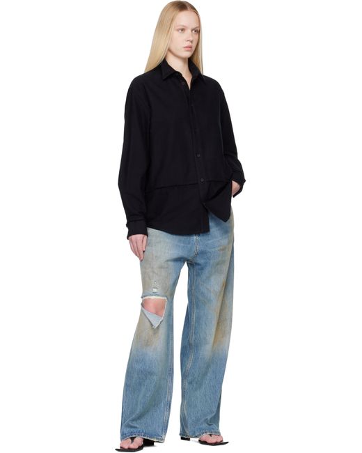 Cotton flannel shirt. · Paneled construction · Raw edges throughout · Spread collar · Button closure · Logo embroidered at front · Shirttail hem · Buttoned barrel cuffs Supplier color: Black