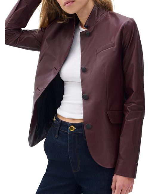 The Slade blazer from rag & bone is crafted of leather and flaunts a stand collar. This long-sleeve piece is complete with three flap pockets at the sides. Stand collar Long sleeves Chest slip pocket Side flap pockets Button-front closure 100% leather Dry clean by leather specialist Imported SIZE & FIT About 25.5" from shoulder to hem Model measurements: 5'10" tall Model is wearing US size 4 ABOUT THE BRAND In 2002, rag & bone founder Marcus Wainwright combined his British heritage with a downtown-New York aesthetic to set the tone for the label. At the heart of the edgy-yet-laid-back brand is its focus on quality craftsmanship and attention to detail. The epitome of cool, off-duty style, it's no wonder the signature second-skin denim is favored by many. Contemporary Sportswear - Rag And Bone > Rag & Bone > Saks Fifth Avenue. rag & bone. Color: Burgundy. Size: 00.