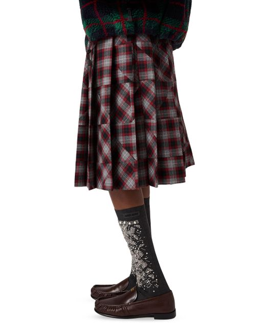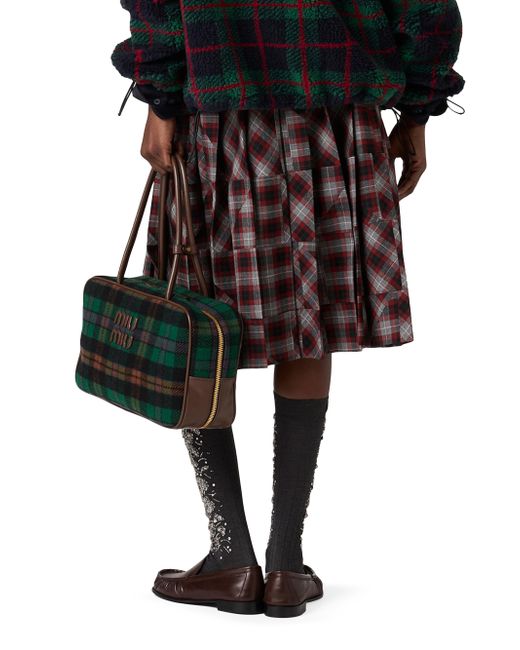 Tartan patchwork midi skirt. Pleated fit Side hook and zip closure Embroidered logo Imported 100% fleece wool. Lsd Handbags - Miu Miu > Miu Miu > Saks Fifth Avenue. Miu Miu. Color: Grey Multi. Size: 4.