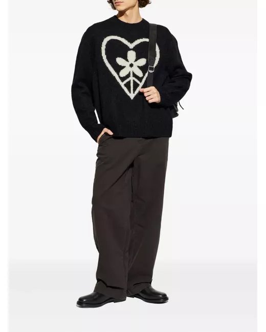 black heart motif flower motif round neck long sleeves ribbed knit hem