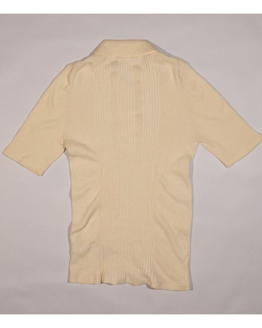 Maison Margiela Cream Cotton Polo Shirt with Ribbed Front and 3 Button Closure. 100% cotton.