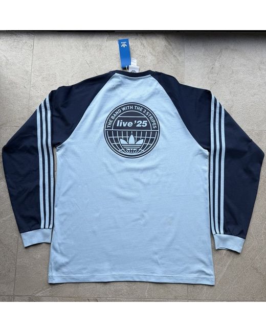 The Adidas X Oasis Tour Long Sleeve T-Shirt in Sky Indigo, size Large, is a brand new garment with tags. Made from cotton jersey fabric, this regular fit T-shirt features a round neck and logo accents. Ideal for summer, this machine washable shirt is from the adidas Originals product line and is perfect for men looking for a stylish and comfortable addition to their wardrobe. Item from smoke and pet free home. Please see my other listed Adidas X Oasis items.