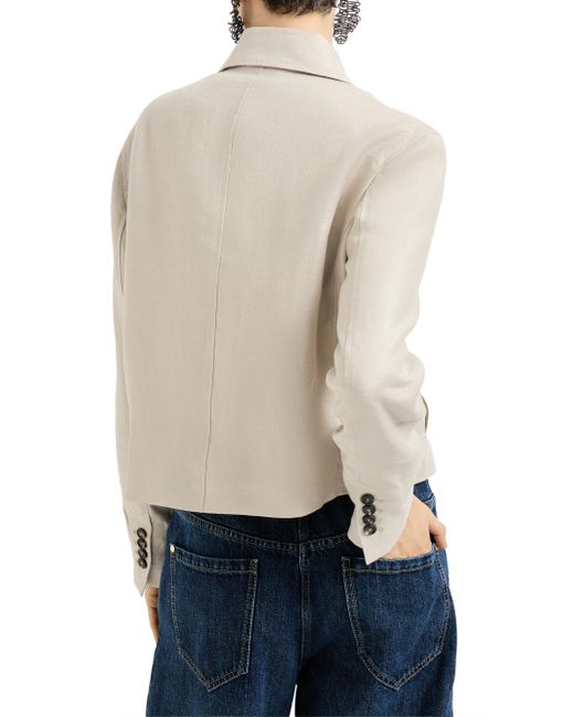 Linen diagonal jacket with monili. Horn button closure Shirt-style collar Cuffs have four horn buttons Upper pockets with flap and button Vertical hand pockets Silk-blend crêpe lining Nickel-free monili decoration Request dry cleaning at specialist cleaner's only, do not bleach. Do not tumble dry, iron at low temperature 100% linen Made in Italy. Lsd Rtw - Brunello Cucinelli Rtw > Brunello Cucinelli > Saks Fifth Avenue. Brunello Cucinelli. Color: Beige. Size: 4.