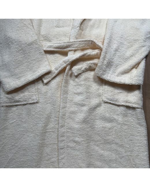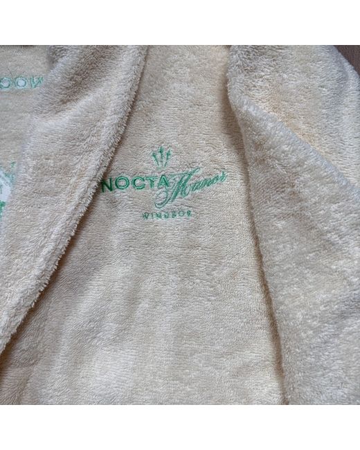 The Rare & Exclusive Nocta Manor Bath Robe Dressing Gown in White/Cream is a luxurious and stylish addition to any man's wardrobe. This solid patterned robe features long sleeves, a collared neckline, and a tie closure for a sophisticated look.