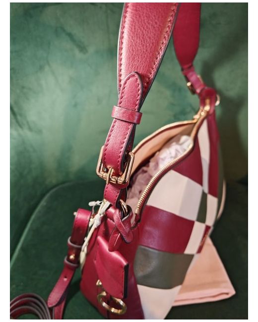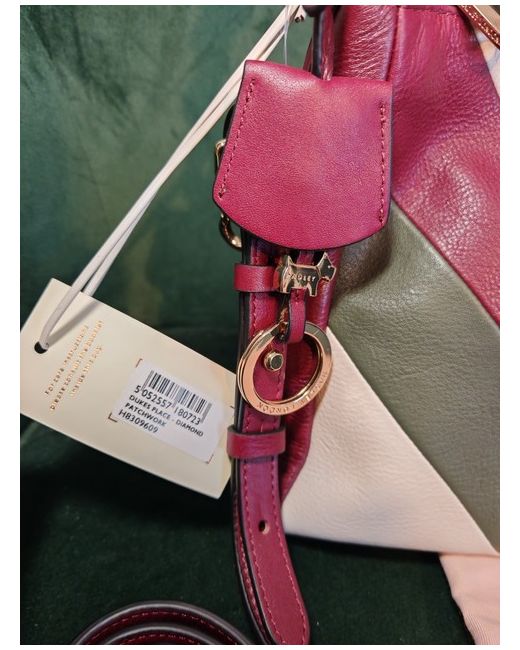 A forever icon, this diamond Patchwork edition of Radley's Dukes Place bag is named after its design - a Diamond Patchwork inspired by tiled floors of grand hotels. Now crafted in panels of soft grained leather, but it's the still the same slouchy ‘90s shape. And has the original two straps for that signature versatility. With a dark cherry background, this can be worn any way you choose. I also have the matching purse for sale, please see my other listings. Dimensions: W29 x H19 x D11 cm Strap drop length: 25 cm Comes with dust cover. From a smoke free home.