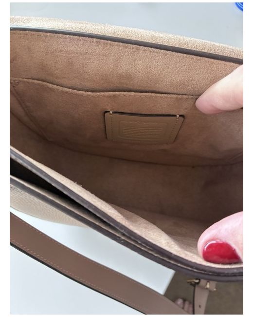 The Coach Leather Bag is a stylish and versatile accessory for women, perfect for casual occasions. Crafted from high-quality leather with a pebbled finish, this rectangular shoulder bag features a zip closure and gold hardware accents. The medium size and beige exterior make it a classic and timeless piece, while the inner pockets provide practical storage. This designer bag from Coach also comes with a detachable strap, adding even more versatility to its style. Perfect for adding a touch of luxury to any outfit, this Coach Leather Bag is a must-have for any fashion-forward woman.
