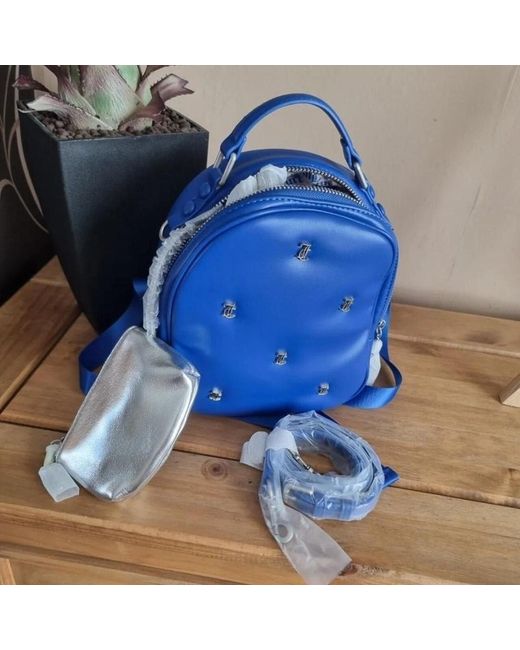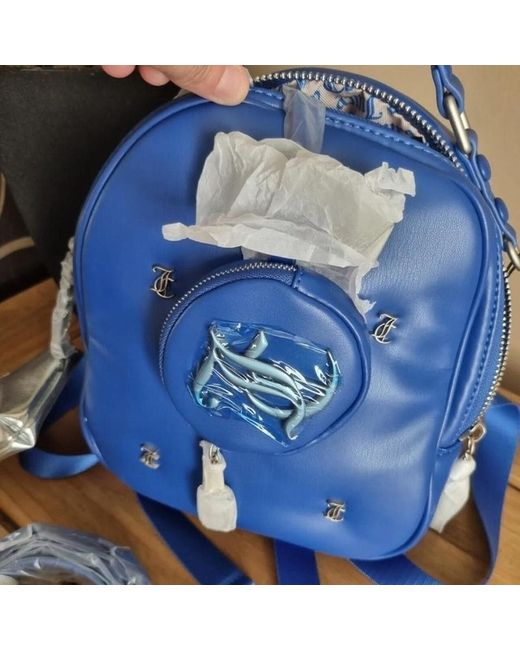 This Juicy Couture backpack is the perfect addition to any college student's wardrobe. The embossed logo and accents give it a designer feel, while the adjustable straps make it practical for everyday use. The blue faux leather exterior and silver hardware add a touch of sophistication to this small-sized backpack. Ideal for travel or casual occasions, this backpack features a zip closure and measures 8.5" in width, 9.4" in height, and 4" in depth. It also comes with an accompanying coin purse. Get your hands on this BNWT Juicy Couture Daisy backpack and make a statement wherever you go.