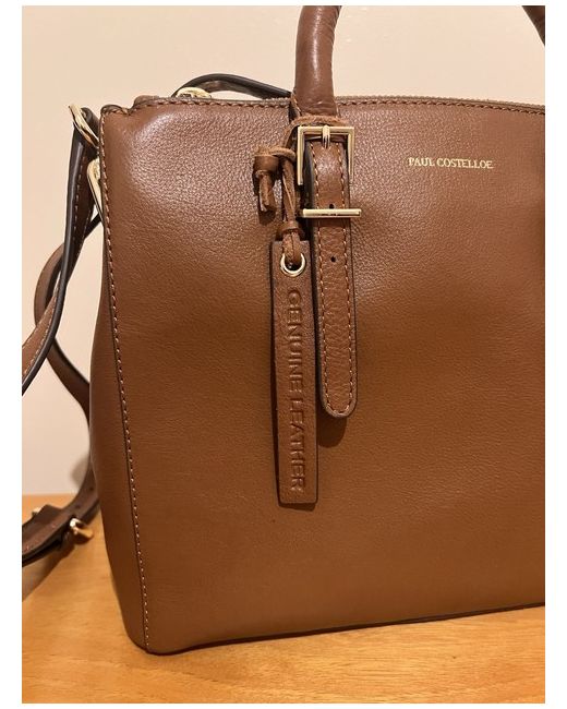 The New Light Brown Bag Paul Costelloe is a medium-sized tote bag made from autumnal brown leather, featuring two locks for added security. With a zip closure and gold hardware accents, this casual designer bag is perfect for everyday use. The interior is lined with inner pockets for organization, making it both stylish and functional for women on the go. The Paul Costelloe brand ensures high quality and attention to detail, making this bag a must-have accessory for any fashion-forward individual.
