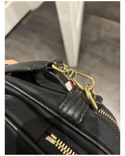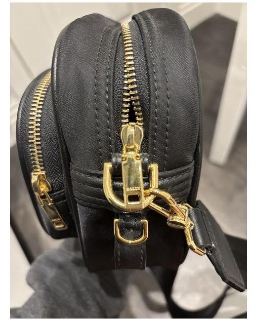 The Bally Crossbody Leather/Nylon Bag in Black is a stylish and versatile accessory for women. Made from a combination of nylon and leather, this small-sized bag features a zip closure, leather lining, and a detachable strap for added convenience. The bag also includes a logo pattern, black hardware, and comes with a pouch, brand card, and other strap accessories. Perfect for casual occasions, this crossbody style bag from Bally exudes sophistication and practicality.
