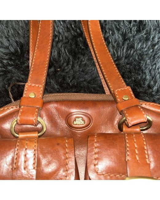 Rich Brown leather The Bridge with gold hardware. Tartan lining. Unused but some signs of patina on leather due to age - has been stored in a cupboard for a few years. Otherwise is as new. No internal wear on fabric. Very chic piece
