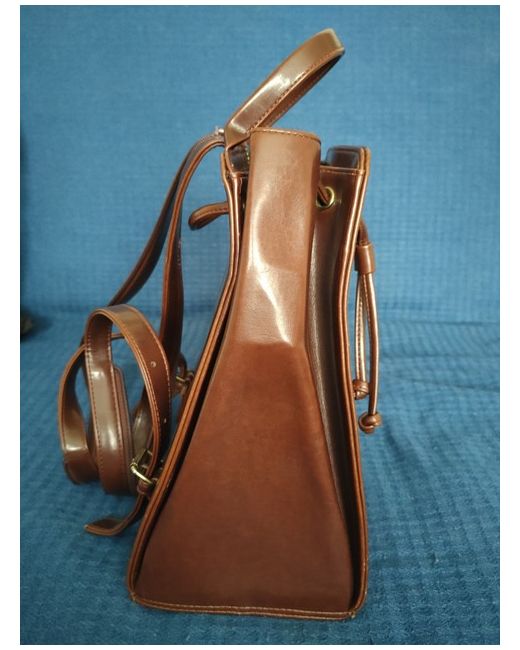 This handcrafted backpack features a unique design with a brown leather exterior, measuring 28cm in height and 23cm in width. It is perfect for women looking for a medium-sized backpack with a stylish logo pattern. The bag also comes with an adjustable strap for added convenience. Handmade with high-quality materials, this backpack is a perfect blend of style and functionality for everyday use.