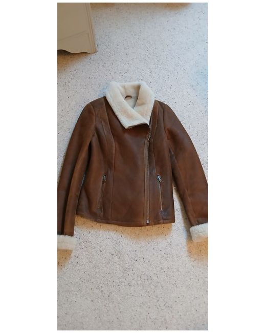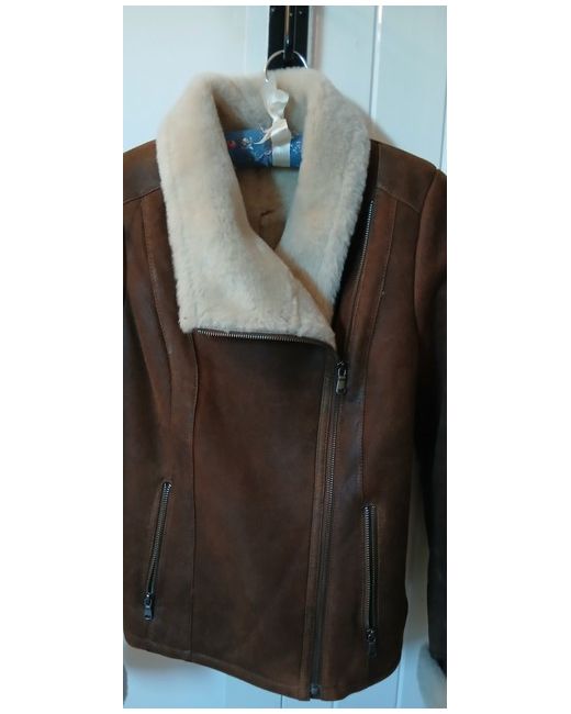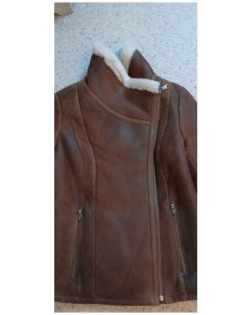 Beautiful real leather shearling aviator jacket.Leather exterior,real sheepskin interior.Zip up front and pockets.Chest measures 16.5 inches flat across.Back length is 22 inches.