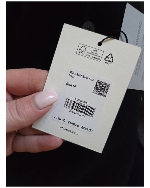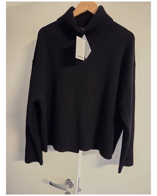The Whistles Black Wool Split Back Roll Neck jumper is a stylish and versatile piece for the autumn season. Made from tight-knit wool, this long-sleeve jumper features a flattering roll neck and a unique split back detail. The classic black colour and casual style make it perfect for everyday wear, while the size M ensures a comfortable fit for women. With its high-quality material and reputable brand, this jumper is a must-have addition to any wardrobe.