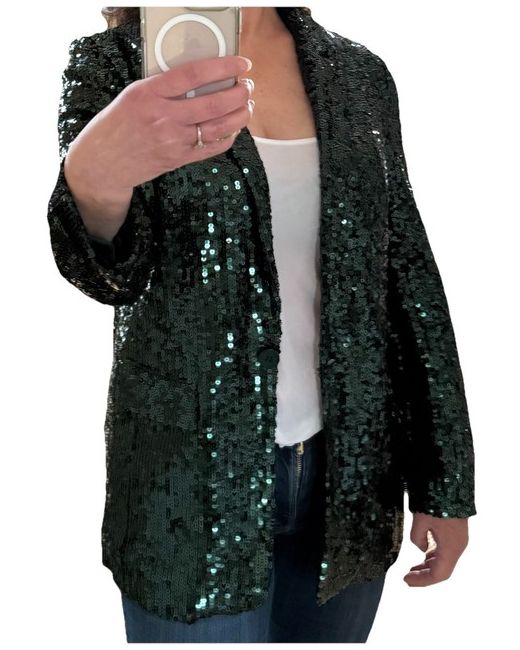Lovely current season dark green sequin single-breasted blazer. Bought for a party that was cancelled due to bereavement. Currently for sale on Whistles website for £130 (reduced price) and out of stock in size 10. Perfect for parties/Christmas/New Year etc. Back vent still sewn shut.