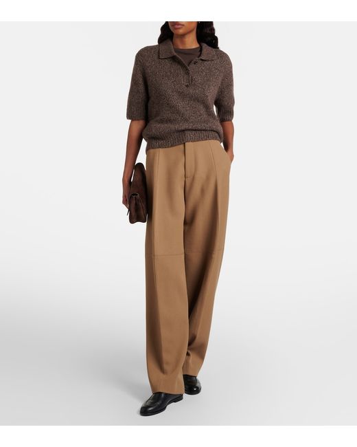 Materiale: 77% cashmere, 23% seta. Trattamento: lavaggio a secco. Made in Inner Mongolia. Colore del designer: Soft Bark. Colore dell'articolo: marrone. Collo: colletto polo. Orlo: a coste.