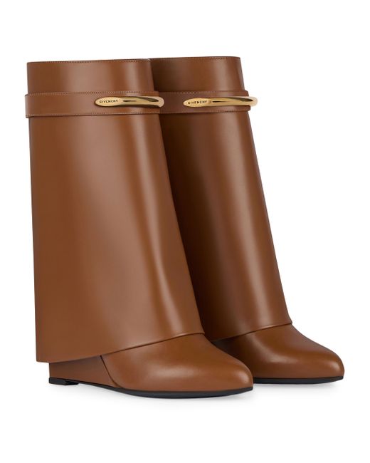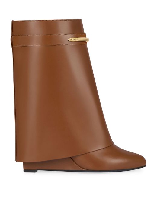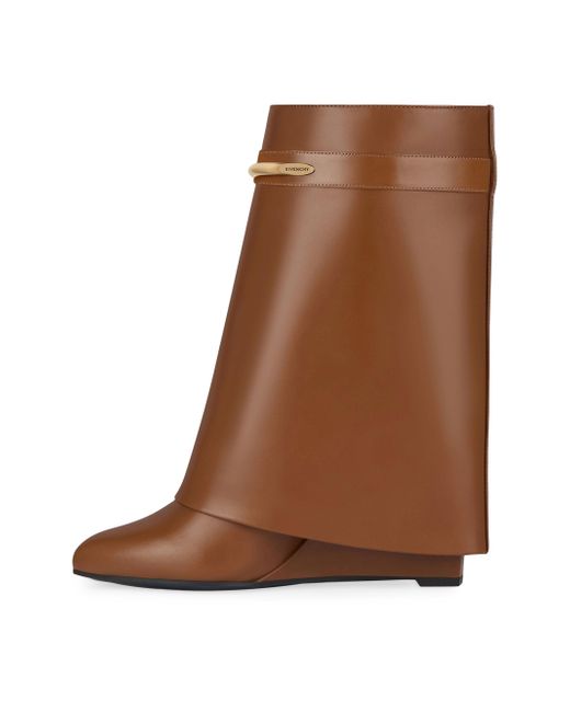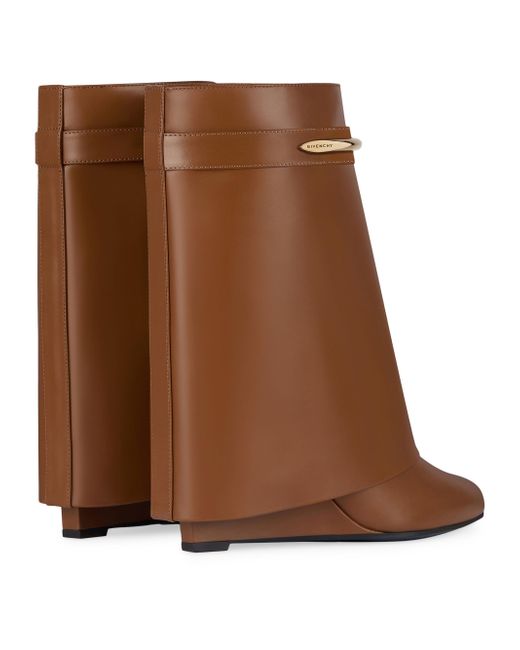 Shark boots in leather. Boots in calfskin leather Shark line Metal pin with Givenchy engraved Golden-finish metal details Pointy toe Covered wedge heels Straight pants designed for versatile wear and an optimal fit Heel height: 3.7 in. Composition: 100% calfskin leather Fits small. Take one full size up Made in Italy. Lsd Rtw - Givenchy Rtw > Givenchy > Saks Fifth Avenue. Givenchy. Color: Tan. Size: 8.