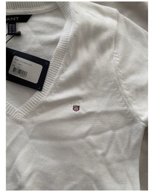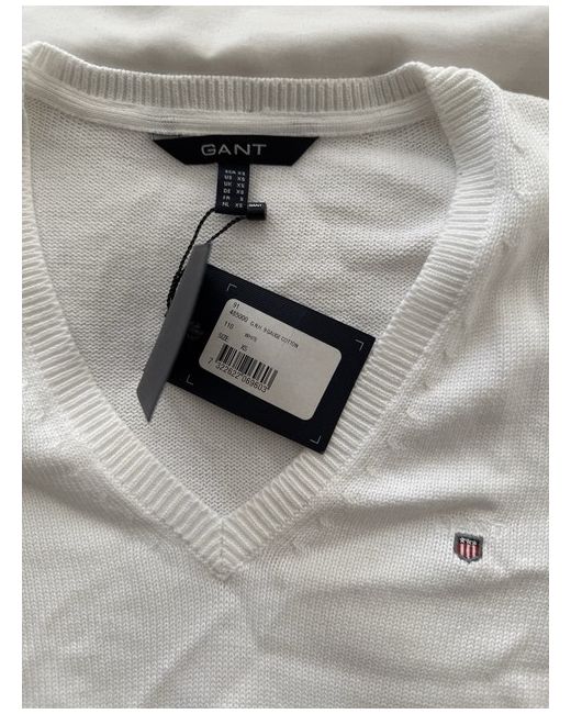 GANT v neck sweater solid cotton white Size XS RRP £120 New with tags and bag
