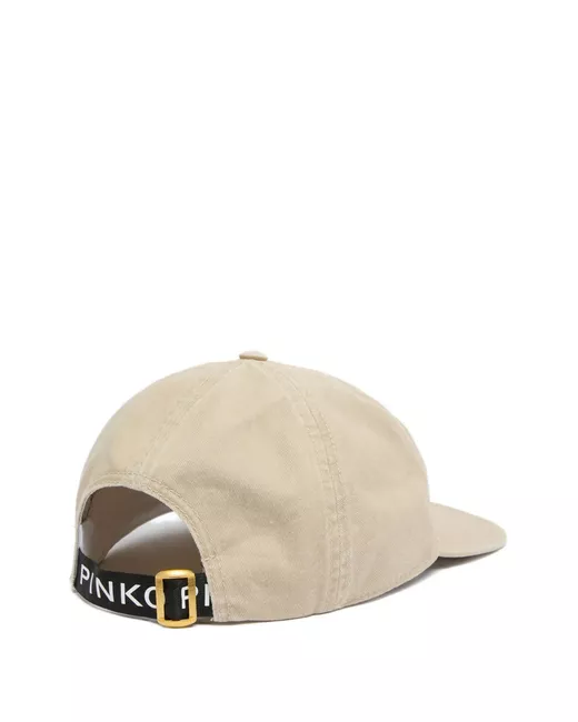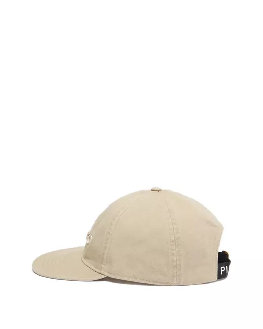 beige cotton tonal lettering adjustable strap buckle fastening curved peak