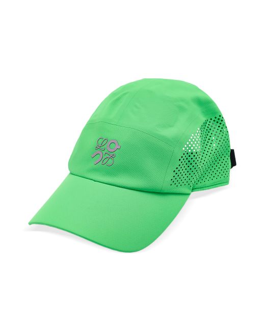 This Loewe x On baseball cap is crafted in lightweight technical fabric with perforated side panels for enhanced airflow. Curved brim Perforated sides Collaboration logo at front Adjustable back strap Polyester Dry clean Imported. Advanced Designer - Loewe > Loewe > Saks Fifth Avenue. LOEWE. Color: Green.