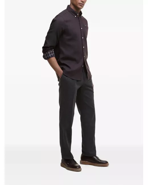 dark oak buttoned patch pocket long sleeves checked cuffs button-down collar