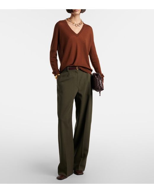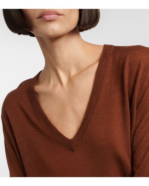 Materiale: 100% cashmere. Trattamento: lavaggio a mano. Made in China. Colore del designer: Cinnamon. Colore dell'articolo: marrone. Collo: scollo a v. Polsini: a coste. Orlo: a coste. Cashmere.