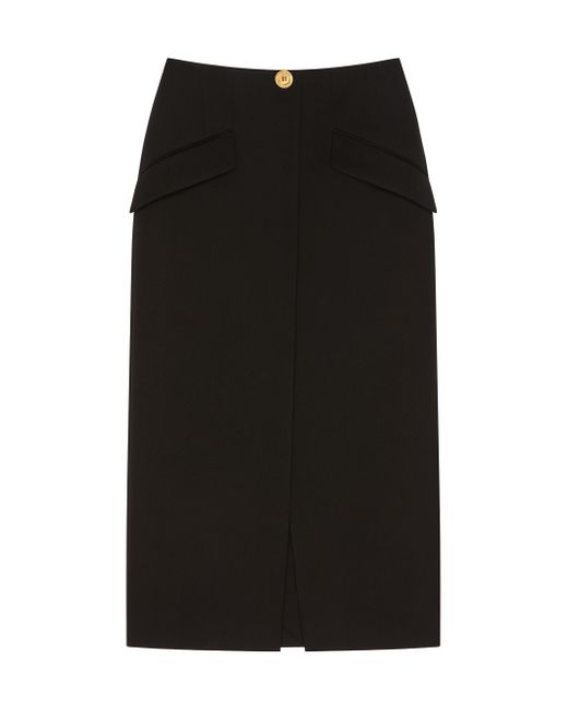 Midi skirt in wool. Midi skirt in grain de poudre wool Button closure with hook on the front Givenchy engraved golden button Two front flap pockets Front and back slit Composition: 100% wool Lining: 100% polyester Made in Italy. Lsd Rtw - Givenchy Rtw > Givenchy > Saks Fifth Avenue. Givenchy. Color: Black. Size: 2.