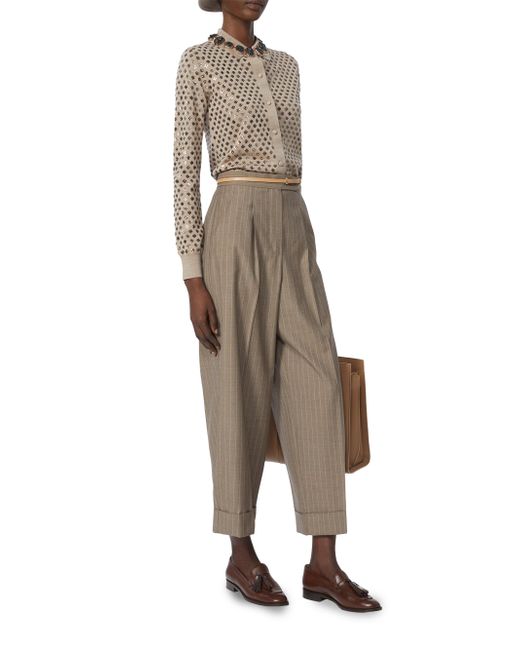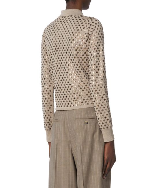 Feminine-fit cardigan featuring all-over sequin-embroidered detail. Stockinette-stitched fine pure wool yarn cardigan Slim-fit model Shirt collar Long set-in sleeves Front fastening comprising 5 knit fabric-covered buttons Ribbed cuffs Straight hem Knitted fabric 100% virgin wool, joining thread 100% polyester, - exclusive of decoration Hand wash cold (40c max), do not bleach, do not tumble dry, flat drying in the shade, cool iron, do not dry clean, do not wet clean, iron with a cloth between, using neutral detergent Imported. Lsd Rtw - Womens Rtw Lsd Mp > Max Mara > Saks Fifth Avenue. Max Mara. Color: Brown. Size: XS.