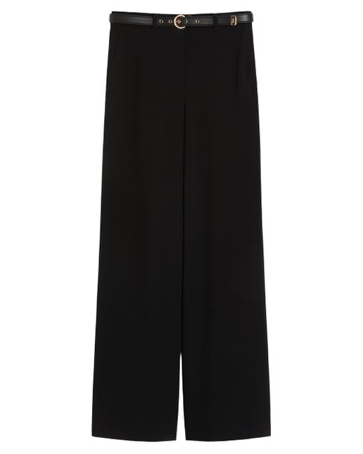 Trousers featuring a wide leg and medium-high waisted silhouette. Cady trousers Wide leg Closure with high waistband, zip with flap and hook Slant pockets on the hips Double welt pockets with button on the back Matching nappa leather belt with circular buckle Belt loops and darts sewn into the back waist Trousers fabric 71% triacetate, 29% polyester, with belt in polyester with polyurethane coating. Trousers: machine wash cold delicate cycle, do not bleach, do not tumble dry, line drying in the shade, cool iron, professionally dry clean perchloroethylene - mild process, Wash the garment while it is fastened, Do not iron the buttons, Protect buttons before washing, Turn the articles inside out before washing. Belt: do not wash, do not bleach, do not tumble dry, do not iron, do not dry clean, do not wet clean Imported. Lsd Rtw - Womens Rtw Lsd Mp > Max Mara > Saks Fifth Avenue. Max Mara. Color: Black. Size: 2.