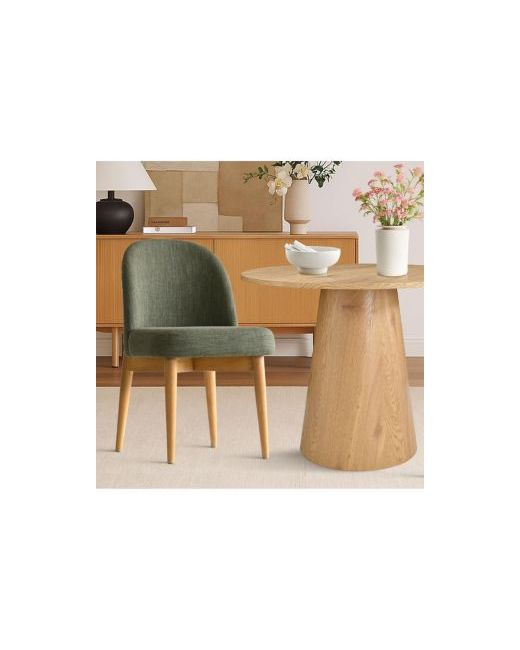 This 3-piece round dining set is the perfect blend of style, comfort, and functionality for compact living. The 35" Mdf tabletop features a natural wood grain finish and a sturdy pedestal base that brings a warm, minimalist aesthetic. The two upholstered side chairs come with softly curved backs, plush cushions, and solid wood legs—offering timeless design with exceptional seating comfort. Ideal for small kitchens, breakfast nooks, or apartment dining areas, this space-saving set creates an inviting spot for meals, morning coffee, or casual conversations. A great choice for modern, transitional, or mid-century inspired homes.