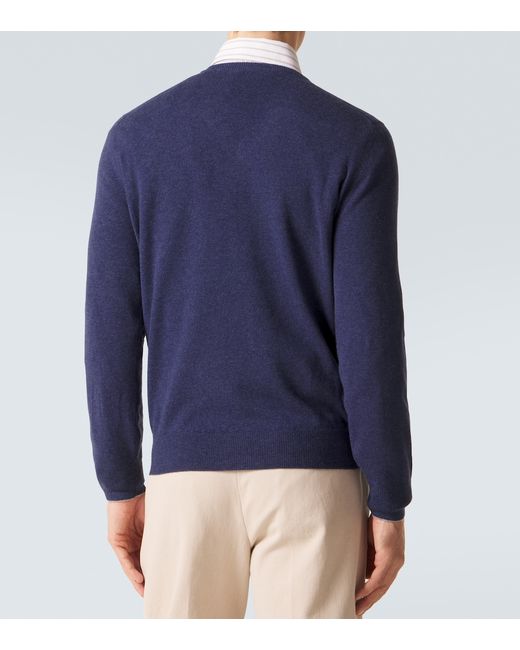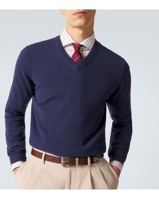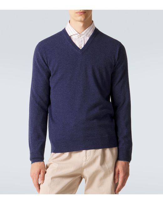 Materiale: 100% cashmere. Trattamento: lavaggio a mano. Made in Italy. Colore del designer: Royale + Grigio Chiaro. Colore dell'articolo: blu. Collo: scollo a v. Polsini: a coste. Orlo: a coste. Cashmere.