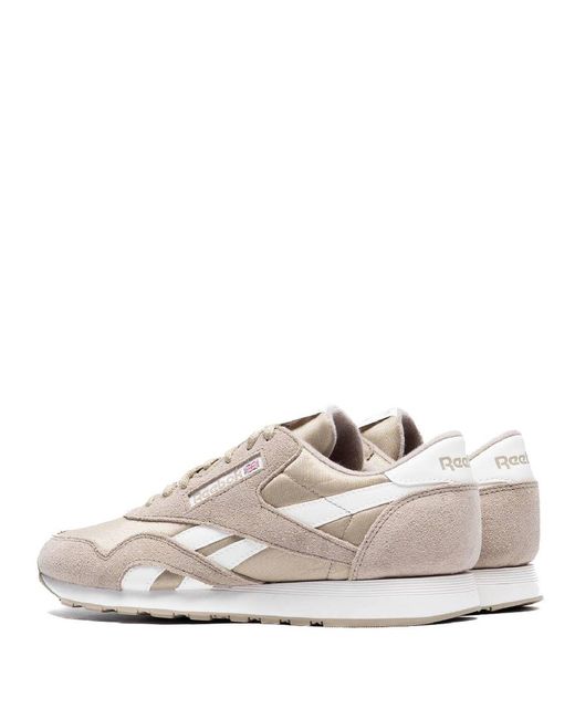 Reebok Sneakers. SKU: RMIA06EC99LEA0016103. Color: Mushroom/Mushr. Reebok Classic Nylon Trainers. These Reebok trainers revive a 1991 design with a smooth nylon upper and soft suede overlays for a sleek, retro-inspired look. Designed for a confident, sporty aesthetic that pairs effortlessly with anything, they feature a cushioned foam insole and EVA midsole for all-day comfort. Finished with a textile lining and a durable rubber outsole, they combine timeless style with reliable performance. Please visit the brand website for sizing information.