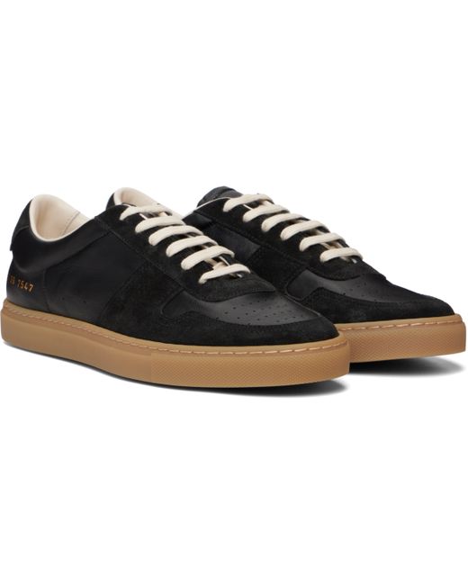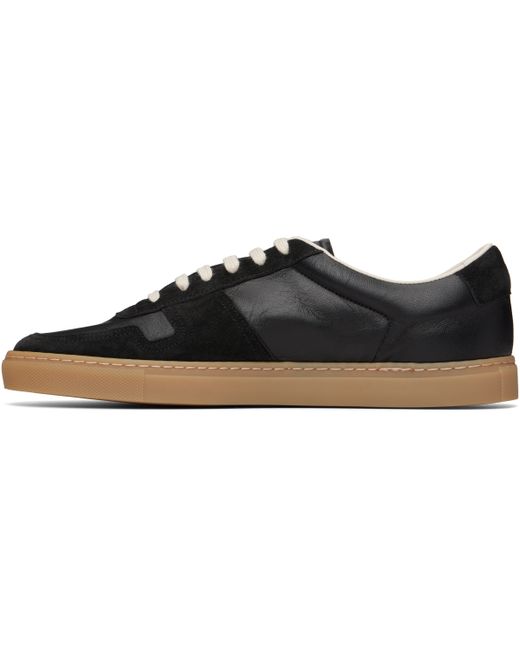 Low-top buffed leather and suede sneakers. · Perforated detailing at toe and outer side · Lace-up closure · Padded tongue and collar · Signature series stamp at outer side · Mesh lining · Treaded rubber sole Supplier color: Black