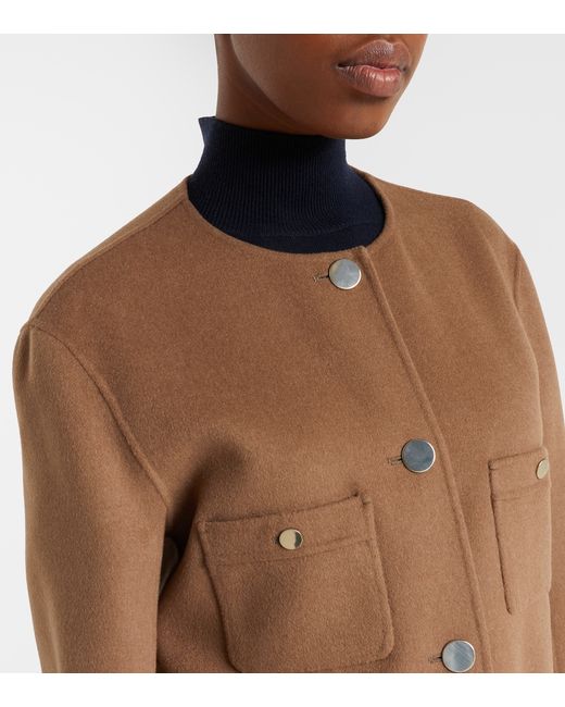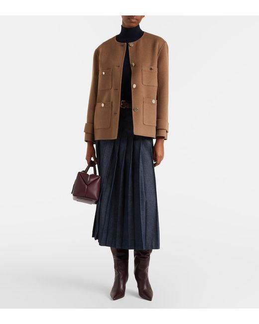 Material: 100% virgin wool. Care instructions: dry clean. Made in China. Designer color name: Dark Blonde. Item color: brown. Lining: 100% silk. Hardware color: silver. Pockets: patch pockets. Closure: buttoned front. Wool.