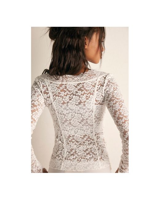 Sheer and stunning in floral, this long sleeve top from Intimately features vertical seam details, a wide scoop neck, and long fitted sleeves for a forever flattering silhouette. * Sheer floral fabrication * Pull-on, fitted style * Scalloped trim * Long fitted sleeves All Night Long Sleeve by Intimately at Free People in Ivory, Size: XS