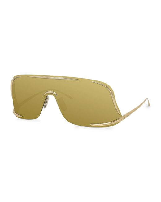 These sunglasses from LOEWE feature a shield silhouette with a saddle nose and an engraved brand lettering at temples. 100% UV protection Mirrored lenses Metal Made in Italy SIZE 141mm lens width 120mm temple length. Soft Accessories - Sunglasses > Loewe > Saks Fifth Avenue. LOEWE. Color: Gold.