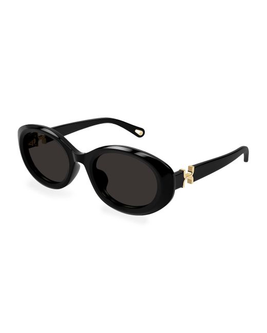 These sunglasses from Chloé feature an oval silhouette with the signature goldtone metal detail on the temples and a saddle nose. 100% UV protection Solid lenses Acetate Made in Japan SIZE 53mm lens width 22mm bridge width 140mm temple length. Soft Accessories - Sunglasses > Chloé > Saks Fifth Avenue. Chloé. Color: Black.