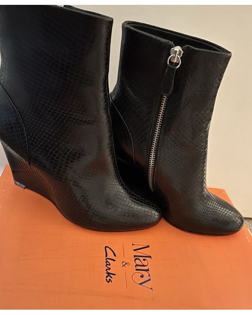 Clarks Leather Ankle Boots - Size 4 Snakeskin effect 100% Leather Heel 8cm New with box