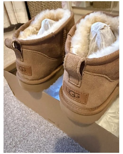 Women’s Uk size 5 / EU38 perfect christmas gift 🎁 Fast shipping! Open to reasonable offers Feel free to ask any questions :) The UGG Classic Ultra Mini Boot in Chestnut, size 5, is a stylish and comfortable slip-on bootie perfect for casual occasions during the winter season. Featuring a round toe shape, low heel, ankle height, and sheepskin lining, these boots offer both style and comfort. Made with suede upper material, wool insole, and rubber outsole, these UGG Australia boots are designed to keep your feet cosy and warm. The classic brown colour and logo accents add a touch of elegance to this timeless and versatile footwear style.